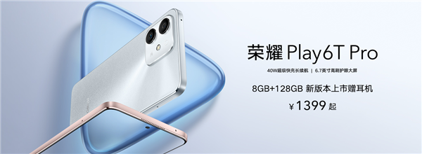1399元!荣耀Play6T Pro 8+128GB版来了:荣耀最薄5G手机