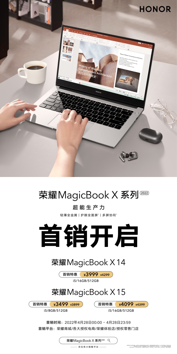 近日,荣耀MagicBook X系列2022版新品正式发布,并于4月28日(00:00-23:59)开启首销。届时,荣耀MagicBook X 14价格3999...